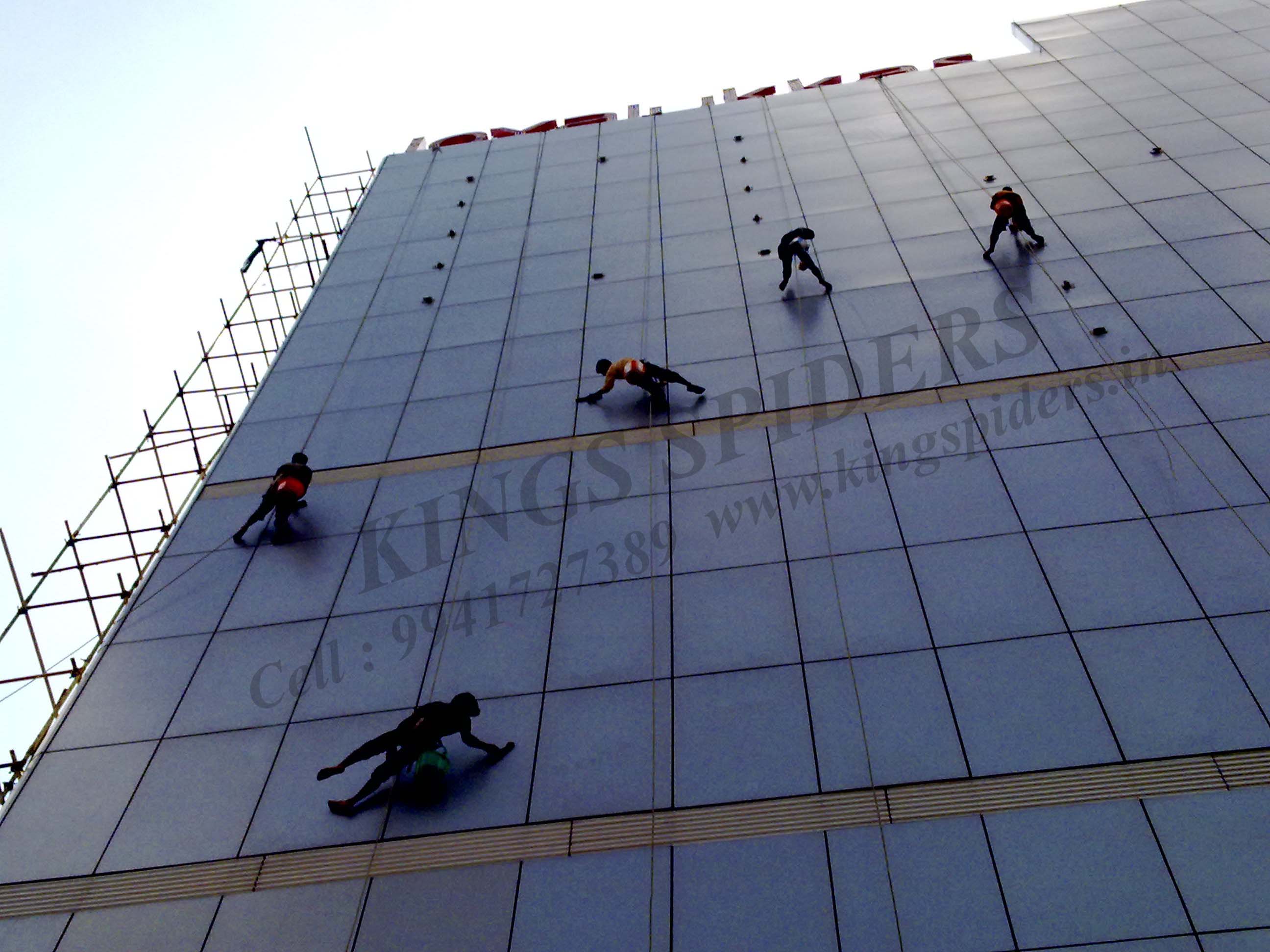 ACP Sheet Cleaning Work in Chennai Window washing is the exterior cleaning of architectural glass used for structural or decorative purpose for Glass Cleaning Work in Chennai, Facade Glass Cleaning Work in Chennai, High Level Glass Cleaning Work in Chennai, Light Fixing Work in Chennai, Painting work in Chennai, Suspended Platform Work in Chennai, Sealant Work in Chennai, Silicon Filling Work in Chennai, ACP Sheet Cleaning Work in Chennai, Glazing Work in Chennai, Eye Bolt Fixing Work in Chennai, Electrical Work in Chennai, Plumbing Work in Chennai, Pigeon Netting Work in Chennai, Glass and ACP Sheet Cleaning Work in Chennai. Contact : 9941727389/9094009400/9841332244 To visit us : www.kingspiders.in / www.kingsspiders.com