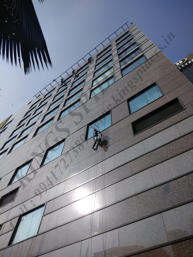 Acpsheet cleaning work in Porur : Window washing is the exterior cleaning of architectural glass is used for structural , lighting or decorative purpose for glass cleaning work in Porur . Facade glass cleaning work in Porur , High level glass cleaning work in Porur , Suspended platform work in Porur , Sealant work in Porur , Silicon filling work in Porur , Acpsheet cleaning work in Porur , Boom lifting work in Porur , Gondola work in Porur , Electrical work in Porur , Plumbing work in Porur , Pigeon netting work in Porur , Scaffolding work in Porur. Contact No: 9941727389 / 9841332244 / 9094009400 To visit us : www.kingspiders.in / www.kingsspiders.com