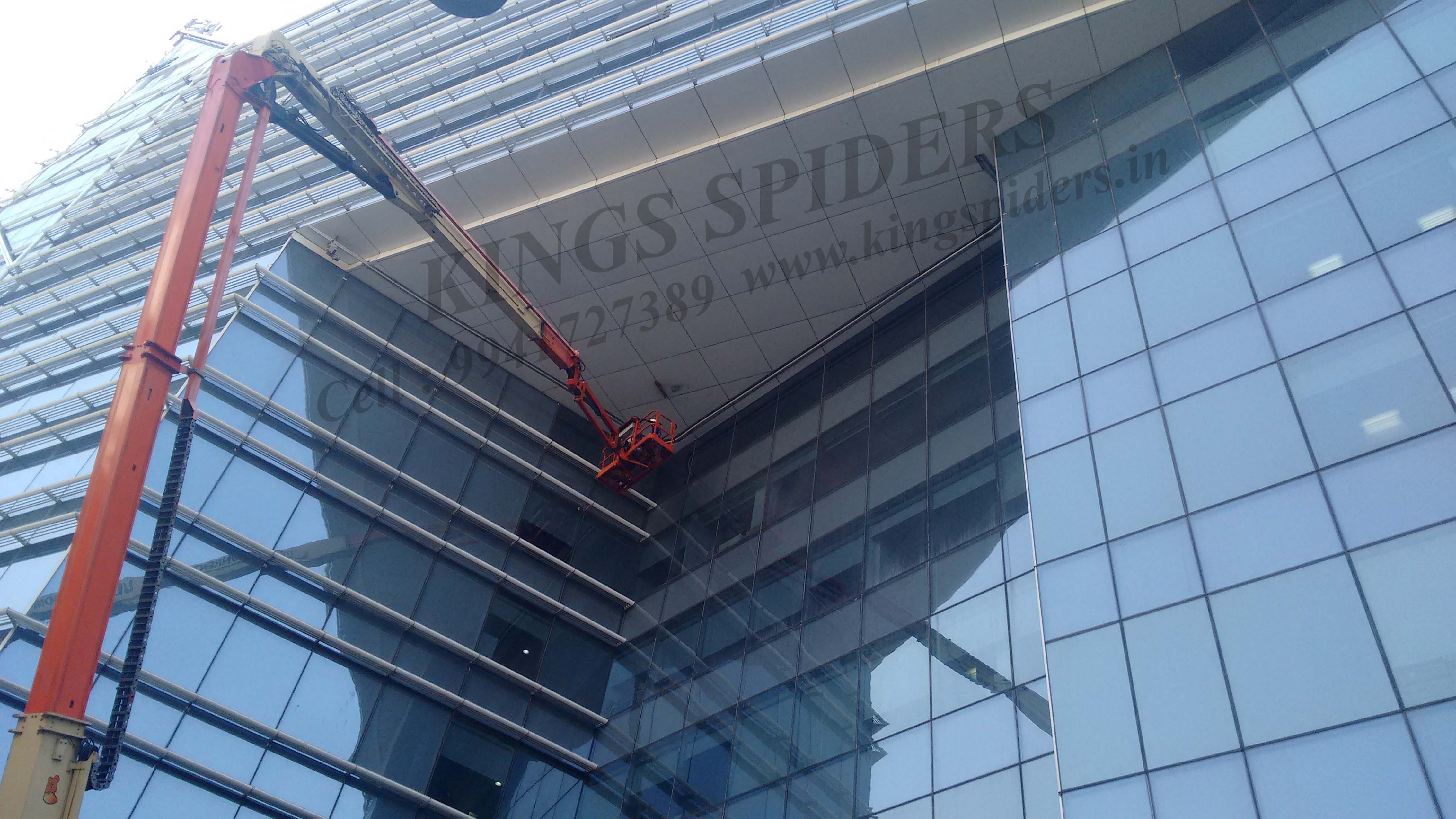 Boom lifting work in Chennai : Window washing is the exterior cleaning of architectural glass is used for structural lighting or decorative purpose for glass cleaning work in Chennai , Facade glass cleaning work in Chennai , High level glass cleaning work in Chennai , Light fixing work in Chennai , Suspended platform work in Chennai , Sealant work in Chennai , Silicon filling work in Chennai , Acpsheet cleaning work in Chennai , Glazing work in Chennai , Electrical work in Chennai , Plumbing work in Chennai , Pigeon netting work in Chennai , Scaffolding work in Chennai . Contact No : 9941727389 / 9841332244 / 9094009400 To visit us : www.kingspiders.in / www.kingsspiders.com