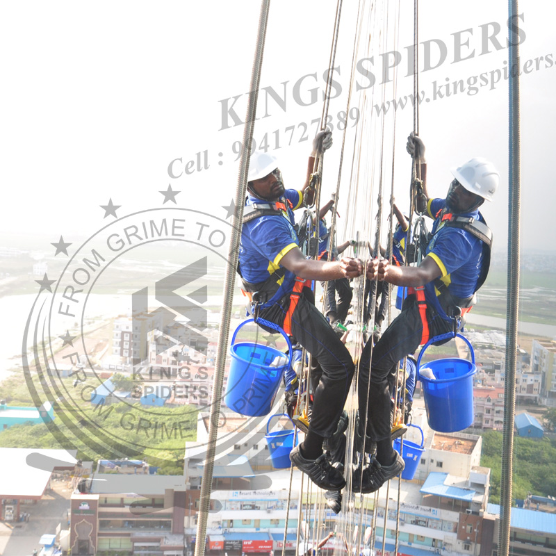 Facade cleaning work in Chennai : Given below are the lists of facade maintenance services offered by Kings Spiders, for all these services unlike other vendors we don’t use scaffolding for accessing height we Instead use Rope Access professionals, who are any day quicker, cheaper than mantling & dismantling scaffoldings that are costly and restricts physical movements. Facade glass cleaning work in Chennai , High level glass cleaning work in Chennai , Suspended platform Work in Chennai , Sealant work in Chennai , Silicon filling work in Chennai , ACP sheet cleaning work in Chennai , I bolt fixing work in Chennai , Name board fixing work in Chennai , Boom lifting work in Chennai , Gondola work in Chennai , Glass fixing work in Chennai , Electrical work in Chennai , Plumbing work in Chennai , Pigeon netting work in Chennai , Scaffolding work in Chennai. Contact No : 9941727389 / 9841332244 / 9094009400 To Visit us : www.kingspiders.in / www.kingsspiders.com