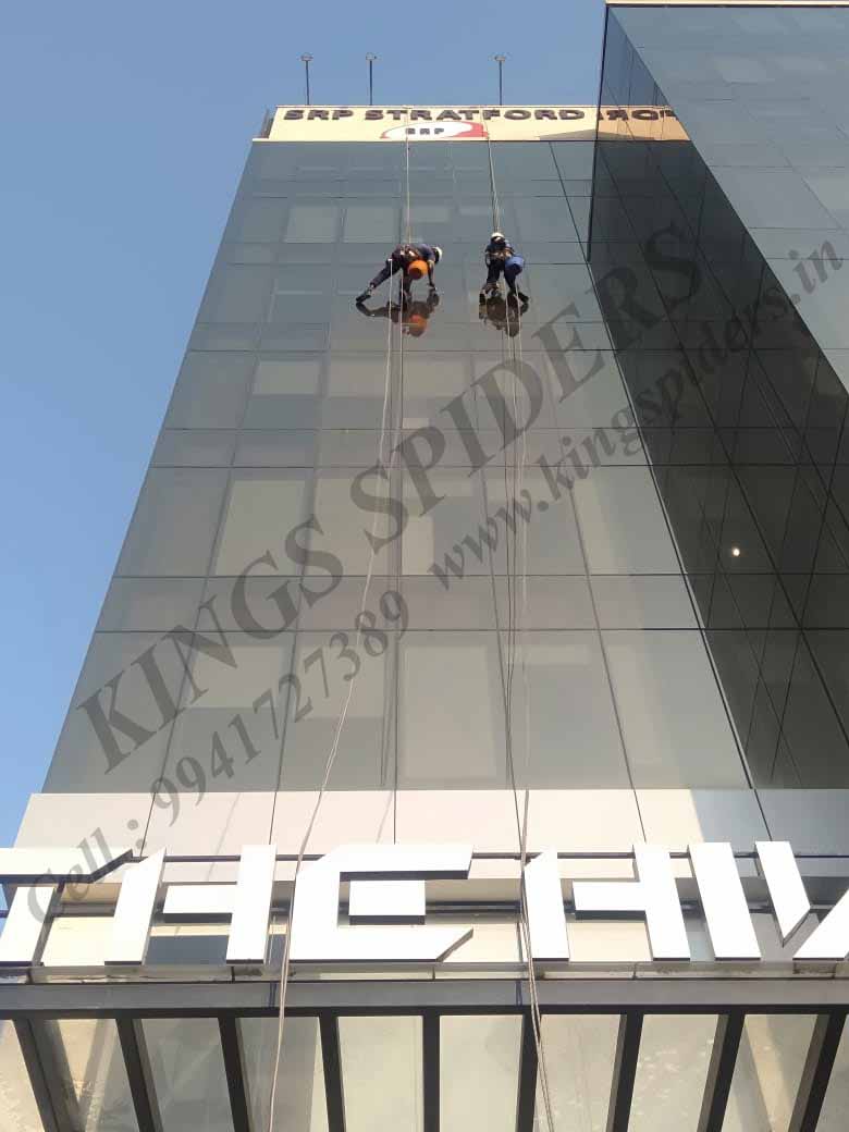 Facade cleaning work in Salem : Window washing is the exterior cleaning of architectural glass is used for structural , lighting or decorative purpose for glass cleaning work in Salem , Facade glass cleaning work in Salem , High level glass cleaning work in Salem , Light fixing work in Salem , Suspended platform work in Salem , Sealant work in Salem , Silicon filling work in Salem , Glazing work in Salem , Electrical work in Salem , Plumbing work in Salem , Pigeon netting work in Salem , Scaffolding work in Salem . Contact No : 9941727389 / 9841332244 / 9094009400 To Visit us : www.kingspiders.in / www.kingsspiders.com