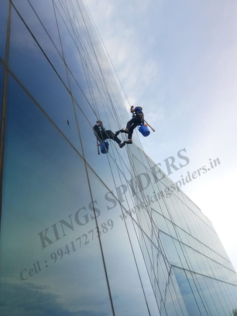 Glazing work in Salem : Window washing is the exterior cleaning of architectural glass is used for structural lighting or decorative purpose for glass cleaning work in Salem , Facade glass cleaning work in Salem , High level glass cleaning work in Salem , Light fixing work in Salem , Suspended platform work in Salem , Sealant work in Salem , Silicon filling work in Salem , Acpsheet cleaning work in Salem , Glazing work in Salem , Glass fixing work in Salem , Electrical work in Salem , Plumbing work in Salem , Pigeon netting work in Salem , Scaffolding work in Salem . Contact No : 9941727389 / 9841332244 / 9094009400 To visit us : www.kingspiders.in / www.kingsspiders.com