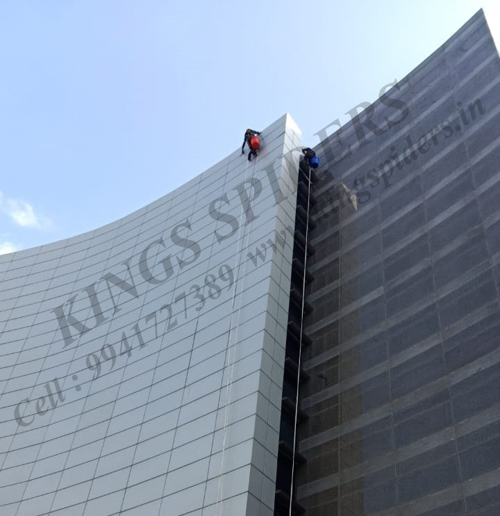 Glazing work in Trichy : Window washing is the exterior cleaning of architectural glass is used for structural , lighting or decorative purpose for glass cleaning work in Trichy , Facade glass cleaning work in Trichy , High level glass cleaning work in Trichy , Painting work in Trichy , Suspended platform work in Trichy , Sealant work in Trichy , Silicon filling work in Trichy , Acpsheet cleaning work in Trichy , Glazing work in Trichy , Glass fixing work in Trichy , Electrical work in Trichy , Plumbing work in Trichy , Pigeon netting work in Trichy , Scaffolding work in trichy. Contact No : 9941727389 / 9841332244 / 9094009400 To visit us : www.kingspiders.in / www.kingsspiders.com