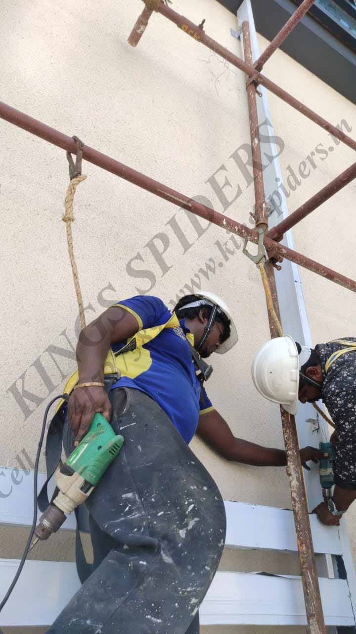 Louver fixing work in Chennai : Our technicians clean your windows using eco-friendly cleaning solutions in combination with a variety of tools including water-fed poles and 100% rubber squeegees to not leave any static charges to your windows.Glass cleaning work in Chennai , High level glass cleaning work in Chennai , Suspended platform work in Chennai , Sealant work in Chennai , Silicon filling work in Chennai , Acpsheet cleaning work in Chennai , Glazing work in Chennai , Glass fixing work in Chennai , Electrical work in Chennai , Plumbing work in Chennai , Scaffolding work in Chennai , Pigeon netting work in Chennai . Contact No : 9941727389 / 9841332244 / 9094009400 To Visit Us : www.kingspiders.in / www.kingsspiders.com