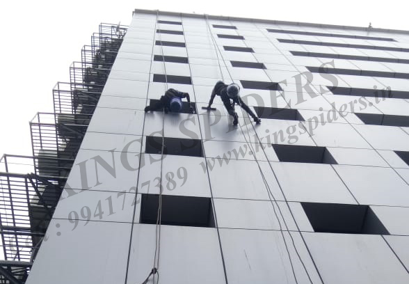 No.1 cleaning work in Chennai : Our technicians clean your windows using eco-friendly cleaning solutions in combination with a variety of tools including water-fed poles and 100% rubber squeegees to not leave any static charges to your windows. Facade glass cleaning work in Chennai , High level glass cleaning work in Chennai , Suspended platform work in Chennai , Sealant work in Chennai , Silicon filling work in Chennai , Glazing work in Chennai , Electrical work in Chennai , Plumbing work in Chennai , Pigeon netting work in Chennai . Contact No : 9941727389 / 9841332244 / 9094009400 To visit us : www.kingspiders.in / www.kingsspiders.com