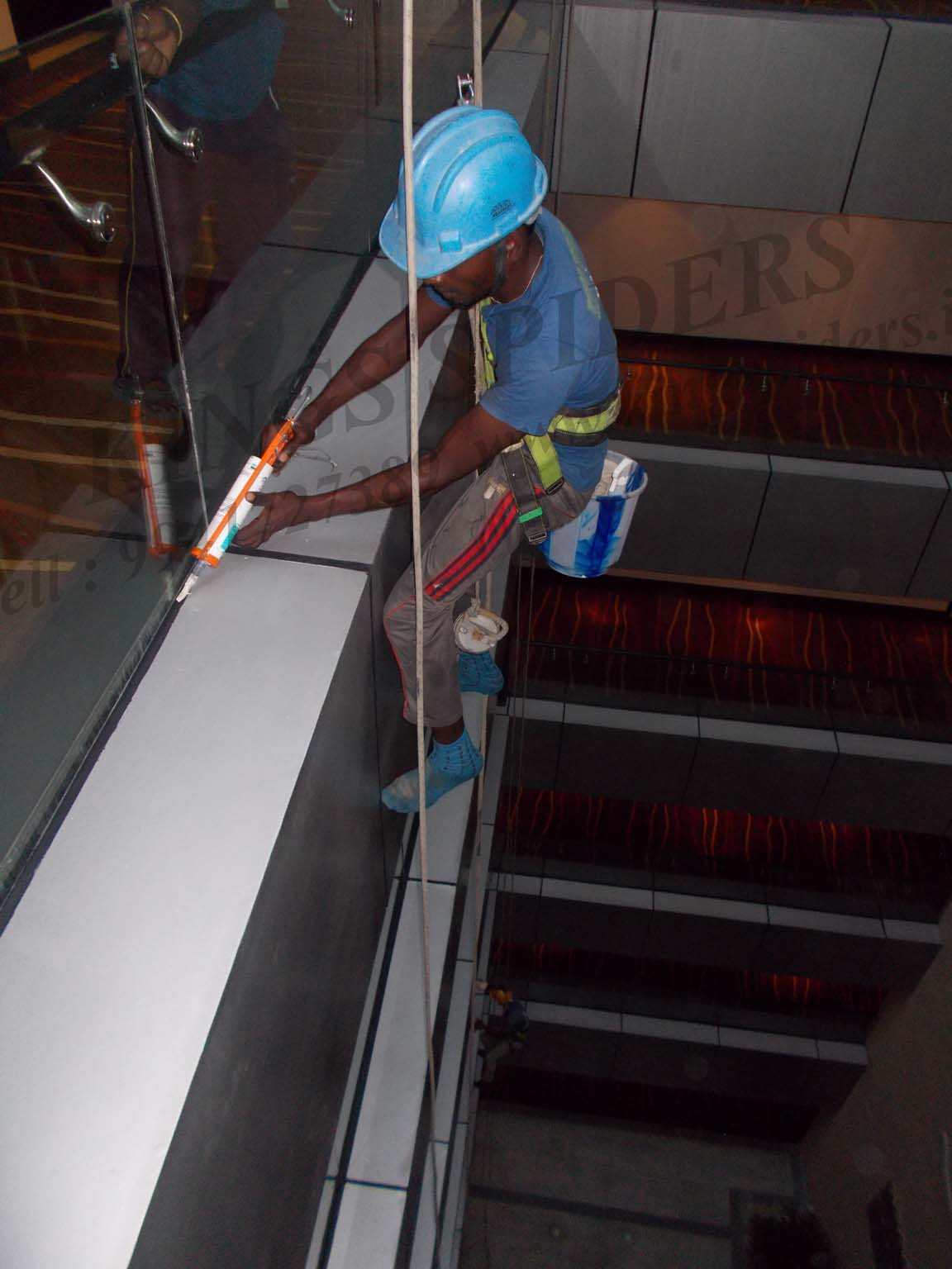 Sealant work in Chennai : Window washing is the exterior cleaning of architectural glass is used for structural , lighting or decorative purpose for glass cleaning work in Chennai , Facade glass cleaning work in Chennai , High level glass cleaning work in Chennai , Painting work in Chennai , Suspended platform work in Chennai , Sealant work in Chennai , Silicon filling work in Chennai , Light fixing work in Chennai , Acpsheet cleaning work in Chennai , Glazing work in Chennai , Glass fixing work in Chennai , Electrical work in Chennai , Plumbing work in Chennai , Scaffolding work in Chennai , Pigeon netting work in Chennai . Contact No : 9941727389 / 9841332244 / 9094009400 To visit us : www.kingspiders.in / www.kingsspiders.com