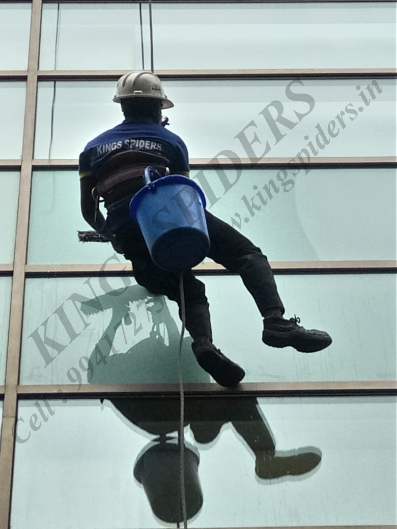 Window glass cleaning work in Chennai : Window washing is the exterior cleaning of architectural glass is used for structural , lighting or decorative Purpose for glass cleaning work in Chennai , Facade glass cleaning work in Chennai , High level glass cleaning work in Chennai , Suspended platform work in Chennai , Light fixing work in Chennai , Sealant work in Chennai , Silicon filling work in Chennai , Acpsheet cleaning work in Chennai , Glazing work in Chennai , Glass fixing work in Chennai , Electrical work in Chennai , Plumbing work in Chennai , Pigeon netting work in Chennai , Scaffolding work in Chennai . Contact No : 9941727389 / 9841332244 / 9094009400 To visit us : www.kingspiders.in / www.kingsspiders.com